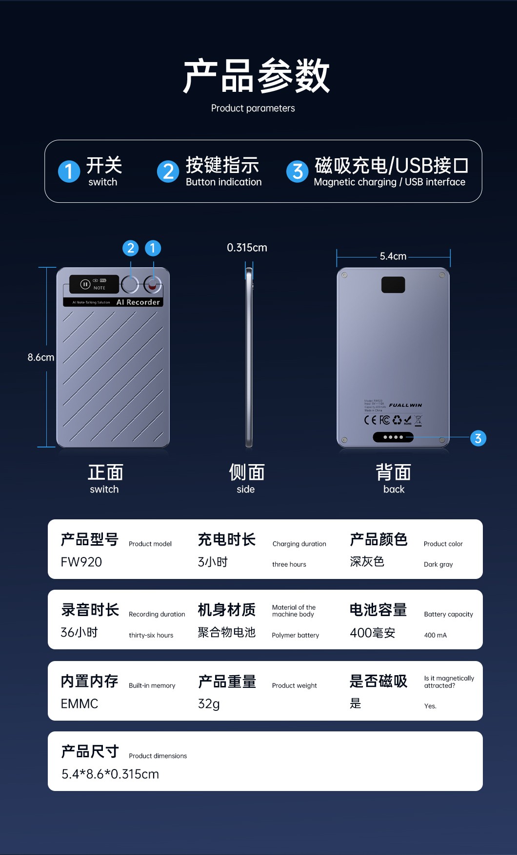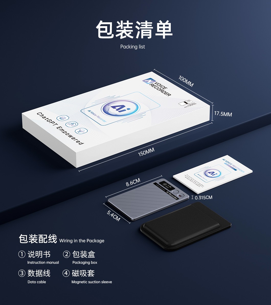 *The accessories include: color box packaging, user manual, magnetic ring, magnetic charging cable, leather case