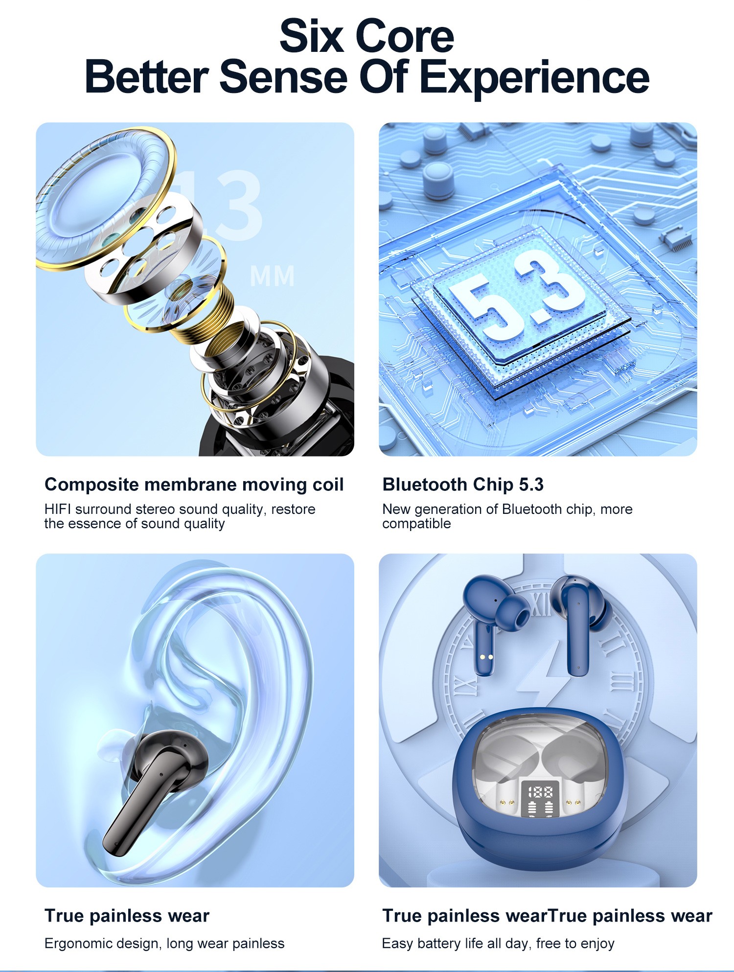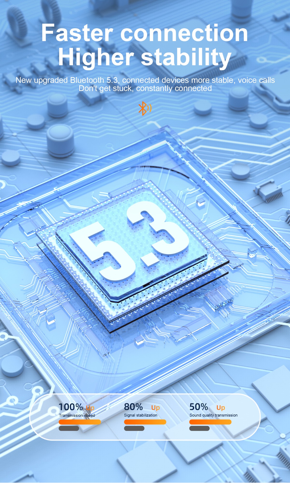 · ENC Call Noise Cancellation: Built-in high-sensitivity microphones and ambient noise reduction algorithms ensure clear voice pickup, even in noisy airports and streets, ensuring accurate translation. · HD Sound Quality: Utilizing high-quality drivers, the earbuds deliver an immersive music and call experience, perfect for both work and play.