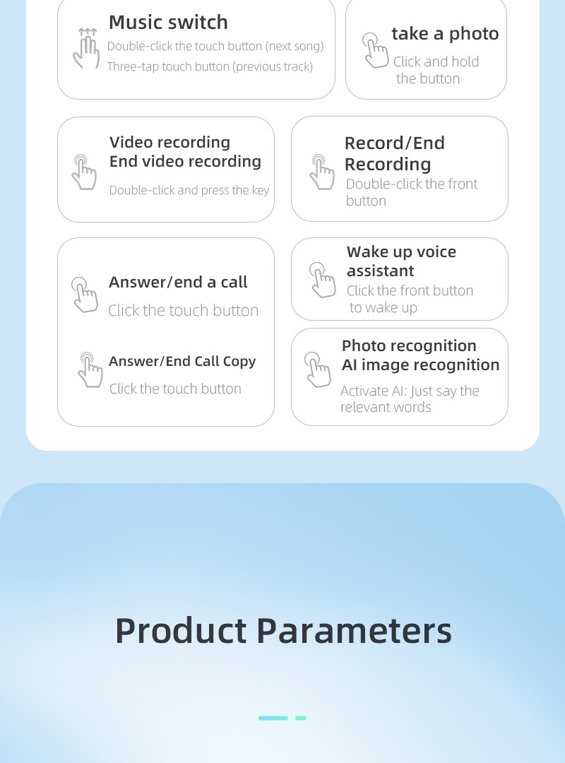 AI object recognition, AI conversation, AI voice wake-up, translation, wearing to play music, photo stabilization,