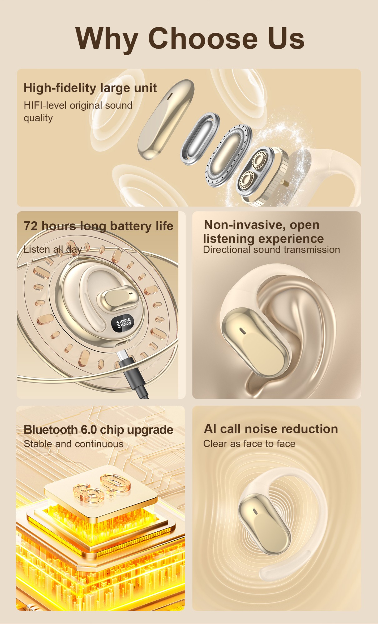 · Built-in high-sensitivity microphones and ambient noise reduction algorithms ensure clear voice pickup, even in noisy airports and streets, ensuring accurate translation. · HD Sound Quality: Utilizing high-quality drivers, the earbuds deliver an immersive music and call experience, perfect for both work and play.
