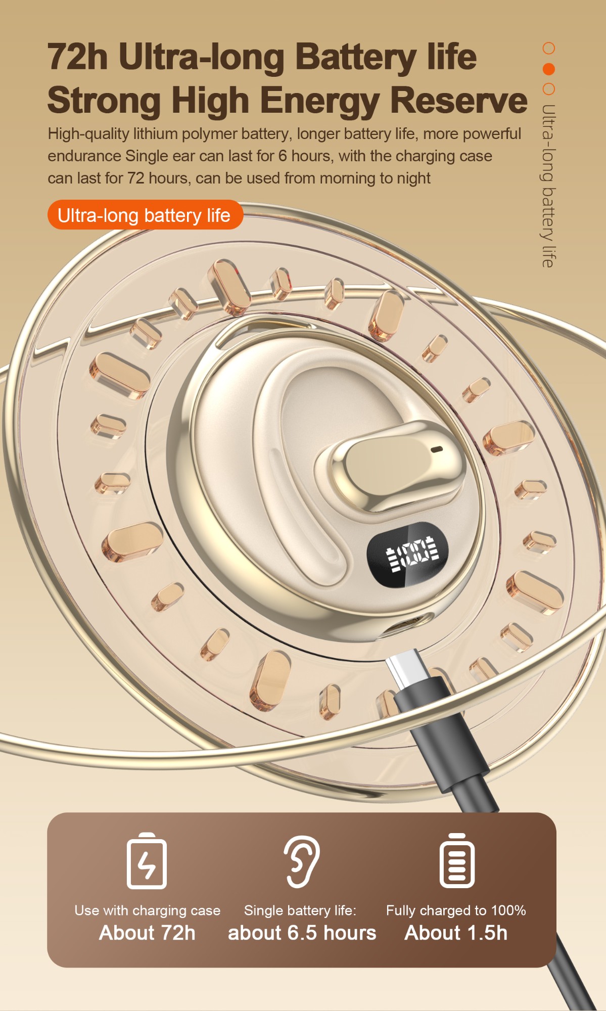 · Long-lasting battery life: The earphones can be used for up to 72 hours with the charging case, meeting all-weather business travel needs.