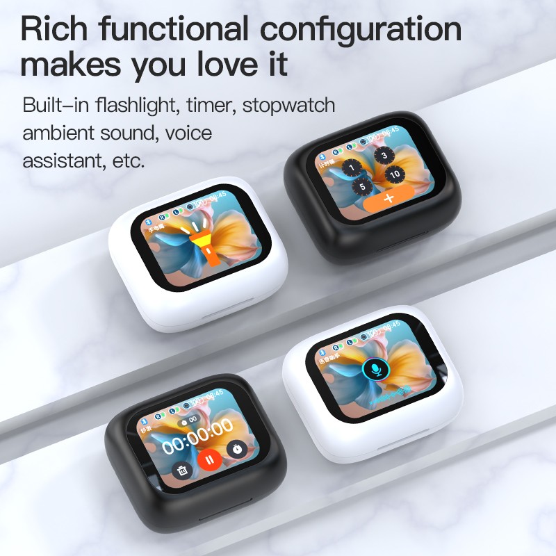 · Touch screen from charging house: Simply tap the earbuds to enable play/pause, previous/next, voice assistant, adjust volume, and more – simple and intuitive. can also choose various menus.