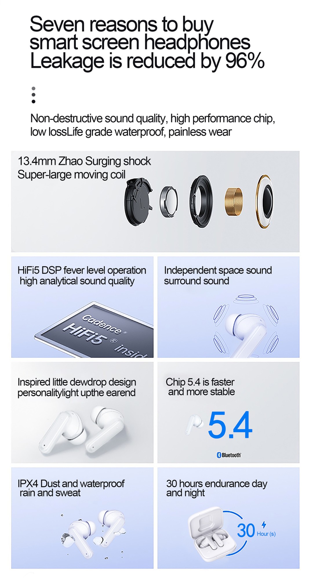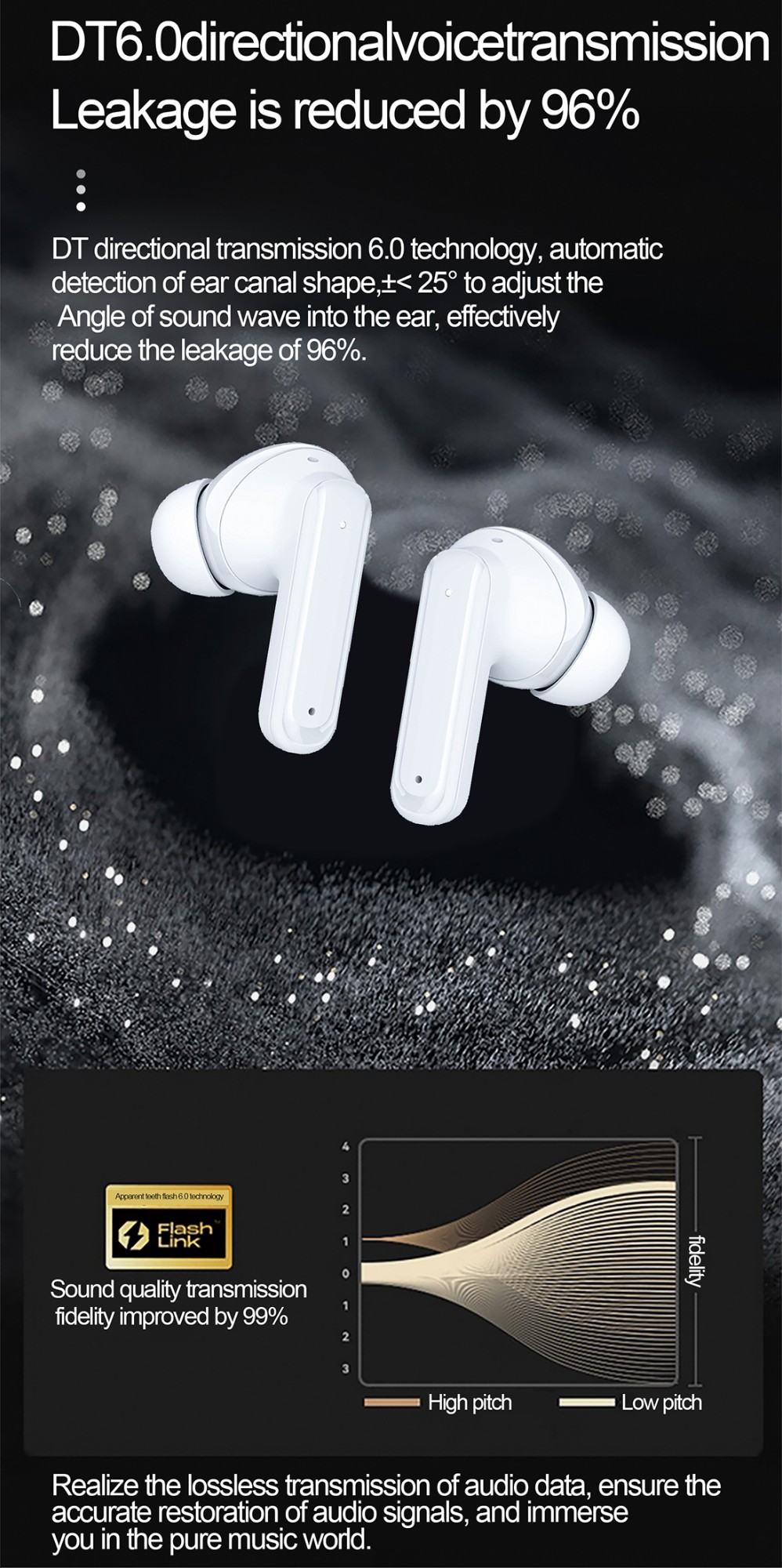· ENC Call Noise Cancellation: Built-in high-sensitivity microphones and ambient noise reduction algorithms ensure clear voice pickup, even in noisy airports and streets, ensuring accurate translation. · HD Sound Quality: Utilizing high-quality drivers, the earbuds deliver an immersive music and call experience, perfect for both work and play.